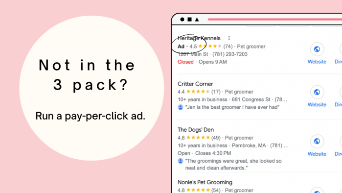 Your Google My Business (GMB) listing often appears in local searches far above your company website’s listing. This premium placement makes it the result searchers tend to click first.