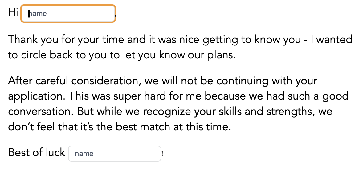 Click step 9 for my exact template for rejecting a candidate kindly.